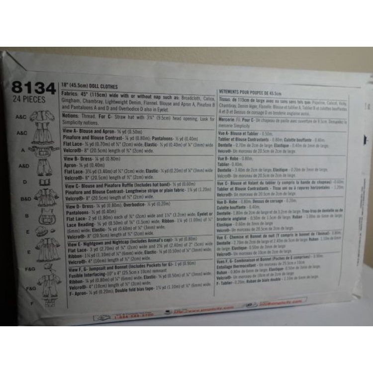 Simplicity Sewing Pattern 8134 Vintage UNCUT